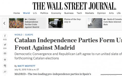 -The Wall Street Journal: Catalan Independence Parties Form United Front Against Madrid